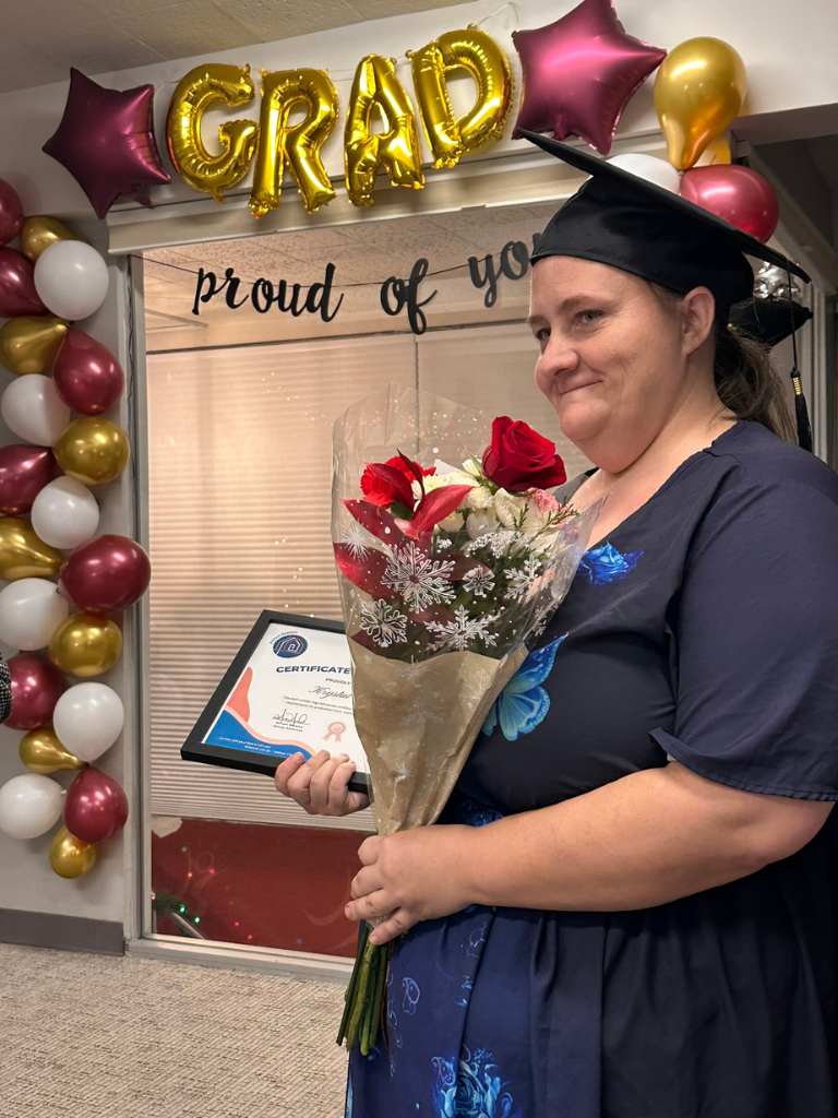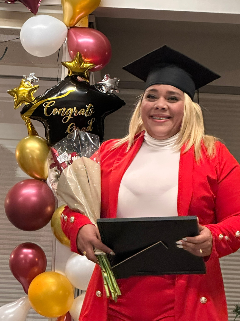 Socoro’s journey is a living example of strength, courage, and transformation. She faced some of the hardest challenges a person can endure—challenges that led her to stop, reflect, and make the brave choice to change the direction of her life. She decided that her story wasn’t over. It was just beginning. She embraced every opportunity to learn and grow from therapy sessions that helped her heal, to classes and programs that opened new possibilities for her future. She stayed committed even when the path was hard, and each step brought her closer to the woman she was always meant to be.”